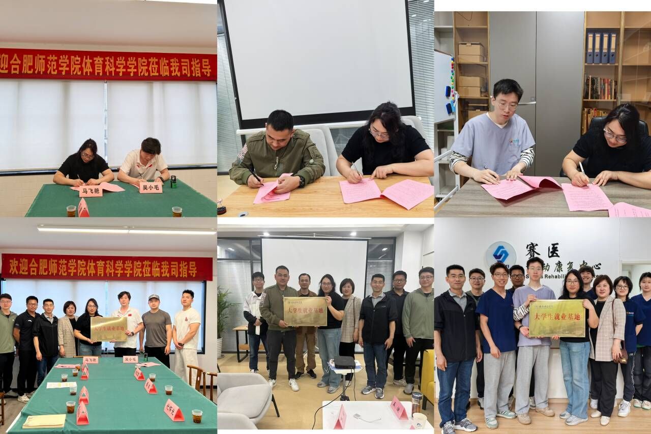为强化产教融合,拓宽学生实践与就业通道,5月6日,体育科学学院党委副书记马飞艳率队走访安徽中跃体育文化发展有限公司、安徽满高教育科技有限公司及合肥市赛医康防健康管理有限责任公司,开展“访企拓岗”专项行动。运动训练系党支部书记陈秀、运动康复系党支部书记闻剑飞及公共体育部党支部副书记苏龙与教师代表,毕业班辅导员等共同参与走访,并与三家企业签署实习就业基地协议,举行“大学生就业基地”授牌仪式。