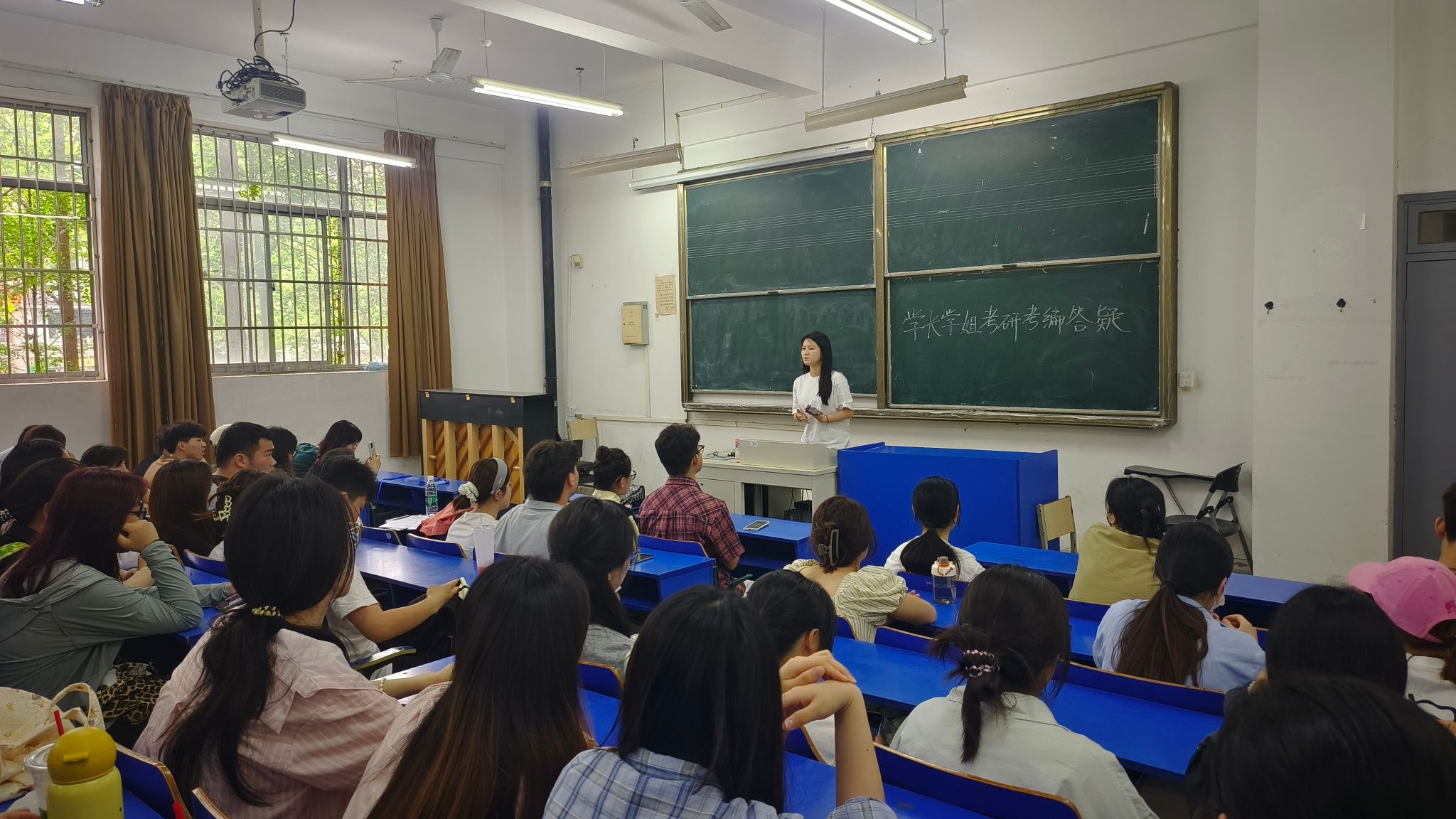 在分享环节,刚刚成功考取教师编制的李嘉烨详细分享了考编的笔试面试技巧,强调“政策研读+实战演练”的重要性;陈昊从“目标定位”“时间管理”“心态调节”三方面分享了考研经历,提出“考研是持久战,要主动屏蔽外界干扰,专注自身复习节奏”。张佳乐结合自身跨专业考研经历,提醒学弟学妹“既要仰望星空,也要脚踏实地”,“选择院校时要理性评估实力,备考中需定期复盘,避免盲目攀比进度。”其他分享者还就资料选择、复试准备等具体问题提供了实用建议。
