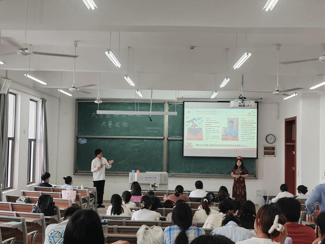 为深入学习贯彻习近平总书记对学校思政课建设的重要指示精神和新时代学校思政课建设推进会精神,充分发挥思政课立德树人关键课程作用,推动思政课建设内涵式发展,6月4日下午,学校在滨湖校区铭传楼B312教室举办了2025年度“大学生讲思政课”决赛。
