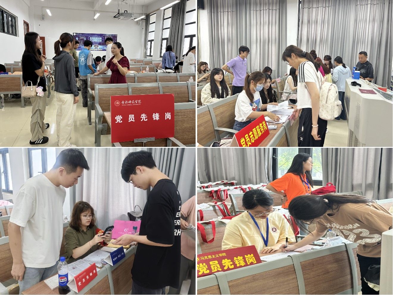 9月9日,在2025级新生报到的第一天,学院各二级党组织广泛开展“当一次志愿者”主题实践活动。一幅幅温馨的欢迎标语、一个个醒目的引导标识、一次次热情的帮助指引,师生党员们以最真诚的服务、最温暖的笑容,生动诠释了党员先锋的担当与奉献。