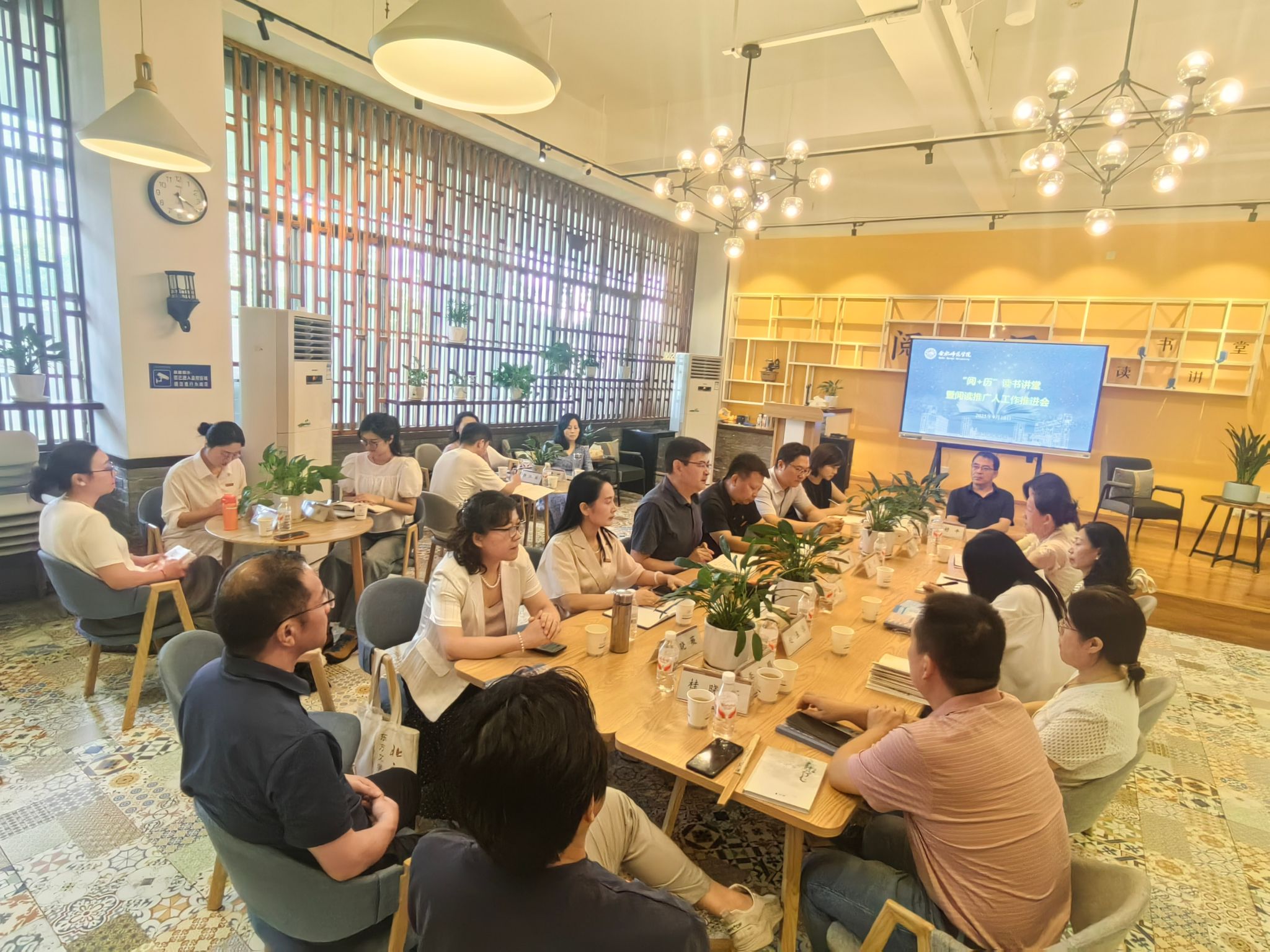 为加强“书香校园”建设,充分发挥学校阅读推广人的示范引领作用,探索优化“阅+历”读书讲堂运行模式,提升活动质效, 9月10日,学院举行“阅+历”读书讲堂暨阅读推广人工作推进会。教务处、滨湖办、图书馆和部分二级学院负责人,校阅读推广人,青轻读书会代表参加会议。