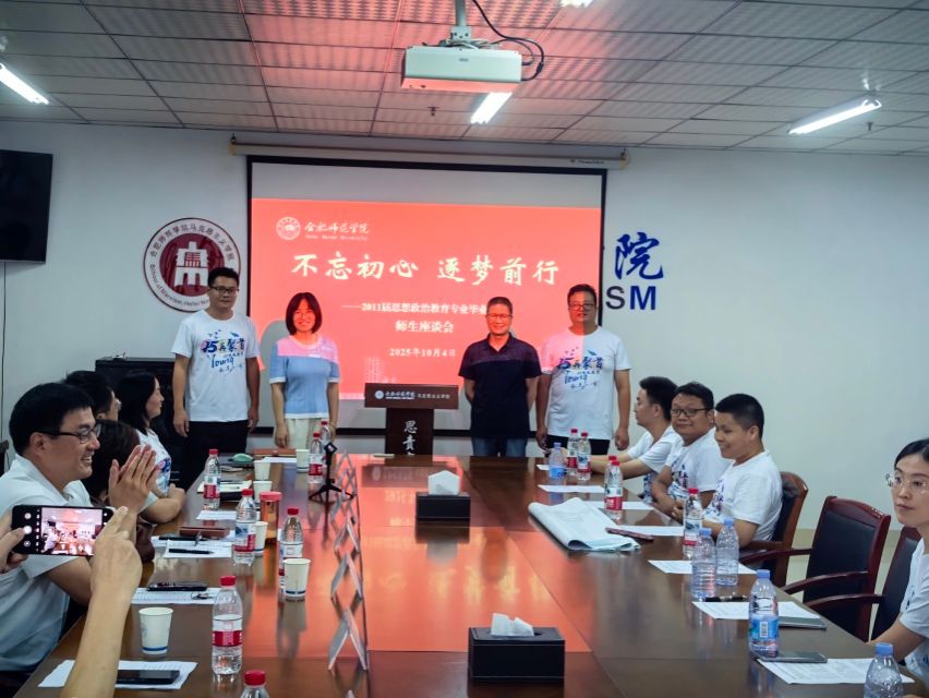 在聆听师长的谆谆教诲后,同学们踊跃发言,依次向恩师汇报十五年来的成长与收获,一些未能到场参加座谈会的同学纷纷通过视频、语音和短信对母校表示祝福。作为学校更名后的首届本科学生,他们深情回忆了在校求学的青葱岁月,并为母校今日的跨越式发展,特别是成功获批硕士学位授予单位,感到无比振奋。大家一致表示,将永远铭记“合师人”的身份,在各自的岗位上砥砺前行,为母校增光添彩。