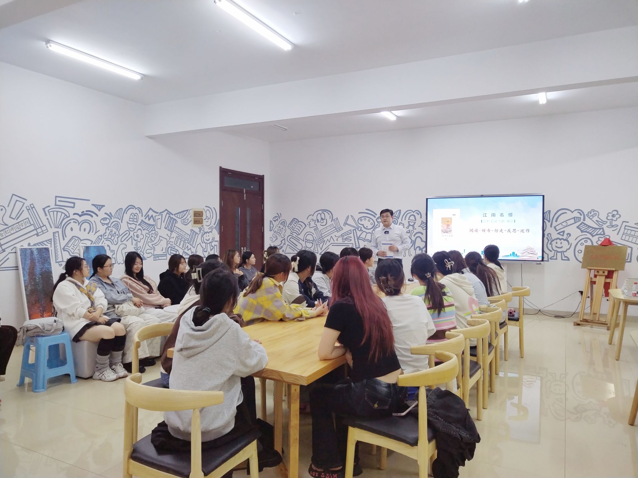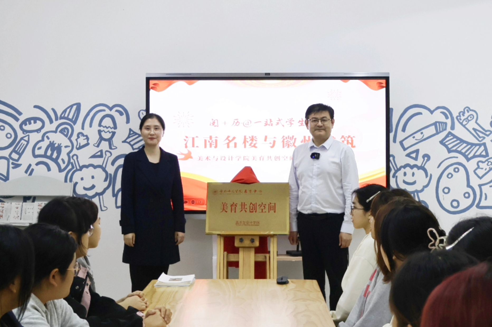 10月15日,学校“一站式”学生社区首场美育共创体验活动在滨湖校区3栋致仁苑学校美育中心美育共创空间拉开帷幕。教务处处长、美育中心主任钱立青教授以“江南名楼与徽州建筑”为主题带来首场分享,美术与设计学院负责人参加活动。