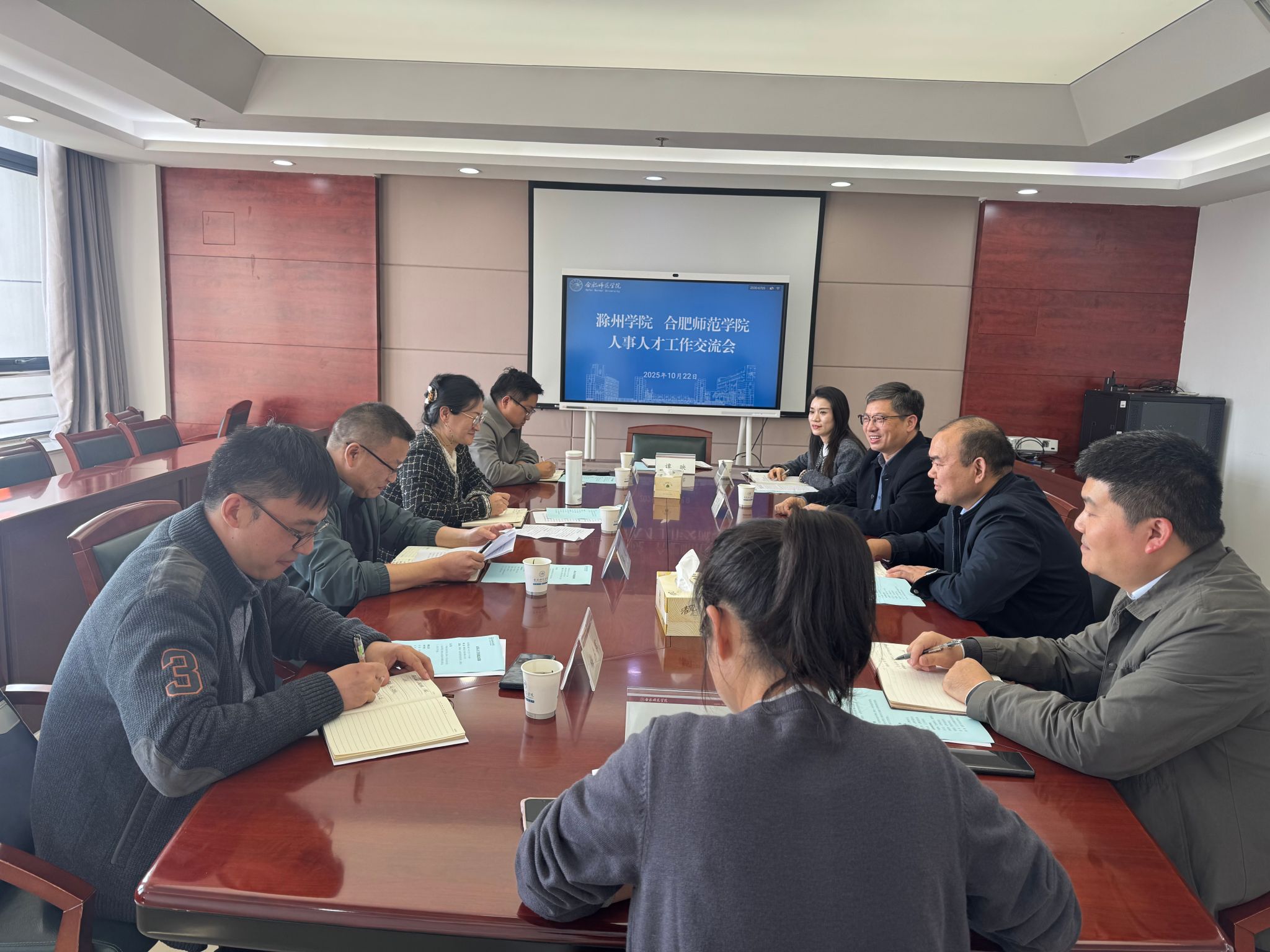 会上,华银峰对滁州学院人事处一行到访表示热烈欢迎,希望双方进一步加强经验交流和工作沟通。张敏对学校的热情接待表示感谢,就本次调研情况进行说明并介绍了在绩效分配、人才引进、年度考核等方面的做法。吴长龙介绍了我校人事管理、职称评审以及绩效工资分配等情况,胡婷婷介绍了绩效工资分配制度改革具体实施相关情况。双方围绕人事人才工作进行了深入交流。(人事处:胡兵)