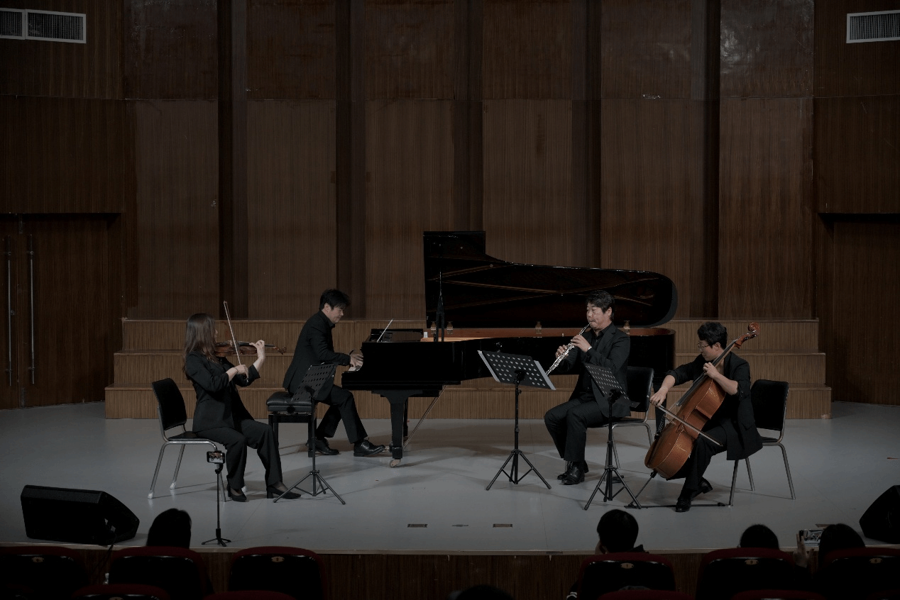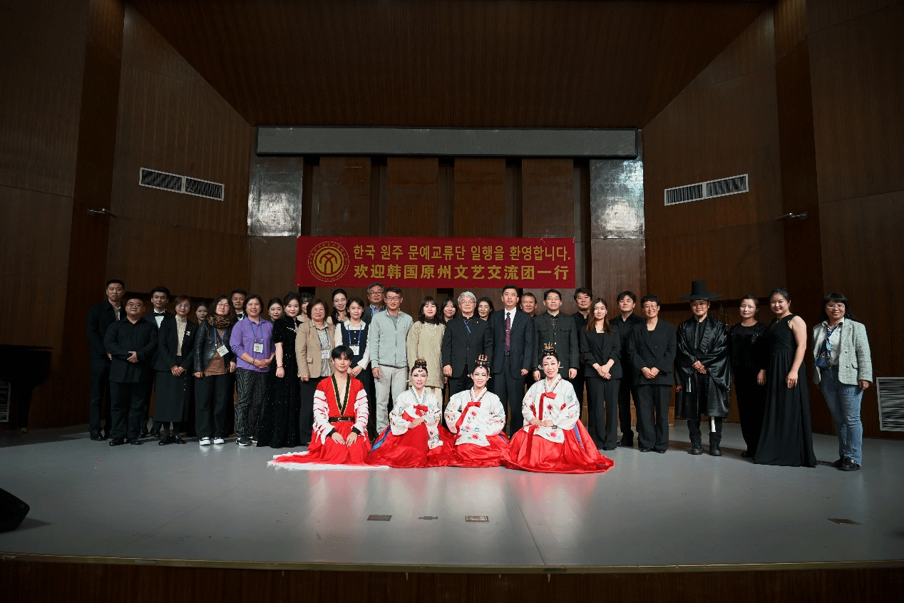 演出在热烈的氛围中拉开帷幕,韩国原州艺总音乐代表团带来了韩国传统民族歌舞、器乐重奏等精彩节目,展现了韩国音乐的独特韵律与文化底蕴。beat365唯一官方网站音乐学院的师生们也积极参与,常青、吕岩、许锴、潘怡、孔祥娅、魏婧姝、齐雪婷、周益妃等师生代表与韩方艺术家同台演出,以声乐、器乐演奏等形式,呈现了中国音乐的丰富表现力。整场演出既有韩国传统艺术的优雅,也有中国现代音乐的活力,中韩艺术家们以精湛的技艺和真挚的情感,赢得了现场观众的阵阵掌声。演出不仅是一次艺术的碰撞,更是一次文化的交融,展现了中韩两国在音乐艺术领域的深厚友谊与合作潜力。