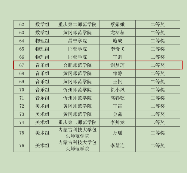 近日,由全国地方院校教师教育联盟主办,肇庆学院承办的首届“泛雅杯”全国地方院校教师教育联盟青年教师教学技能大赛决赛,在广东省肇庆学院落下帷幕。大赛以“深化教师教育改革,服务教育强国建设”为主题,决赛设置课堂教学、主题演讲与现场答辩三个环节,全面考察教师教育教学综合素质。经过激烈的角逐,我校外国语学院黄菁菁老师荣获英语组特等奖、音乐学院谢梦珂老师荣获音乐组二等奖。