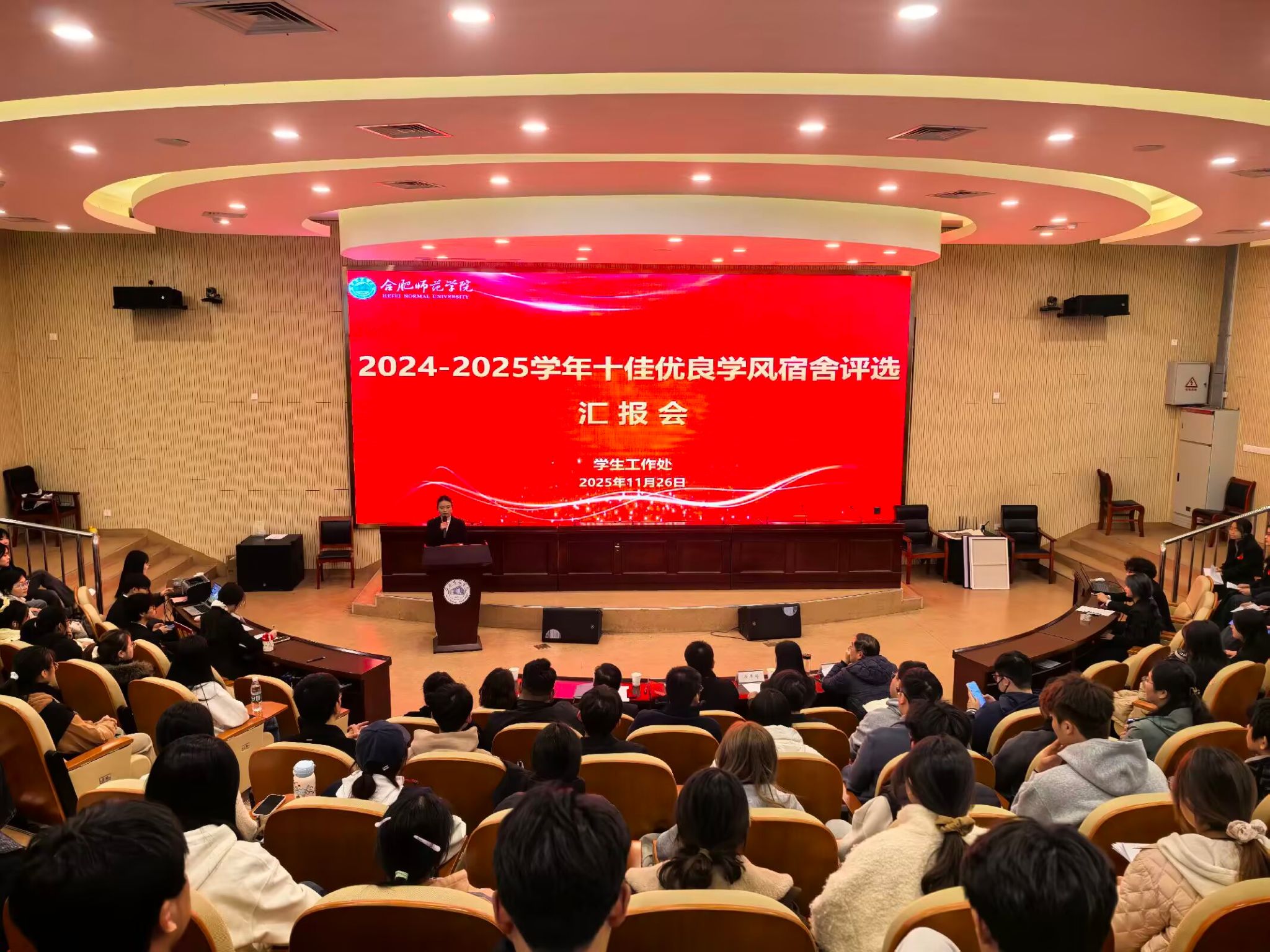 为深入落实学校学风建设工作部署,形成育人阵地从课堂学习到宿舍生活闭环,11月26日下午,2024-2025学年“十佳优良学风宿舍”评选汇报会在滨湖校区学术报告厅举行。滨湖校区综合管理办公室主任周荣、图书馆馆长方孝玲、学生工作处处长赵波、党委宣传部副部长李丹、保卫处副处长束道锋,各二级学院辅导员及学生代表齐聚现场,共同见证优良学风宿舍的风采展示。