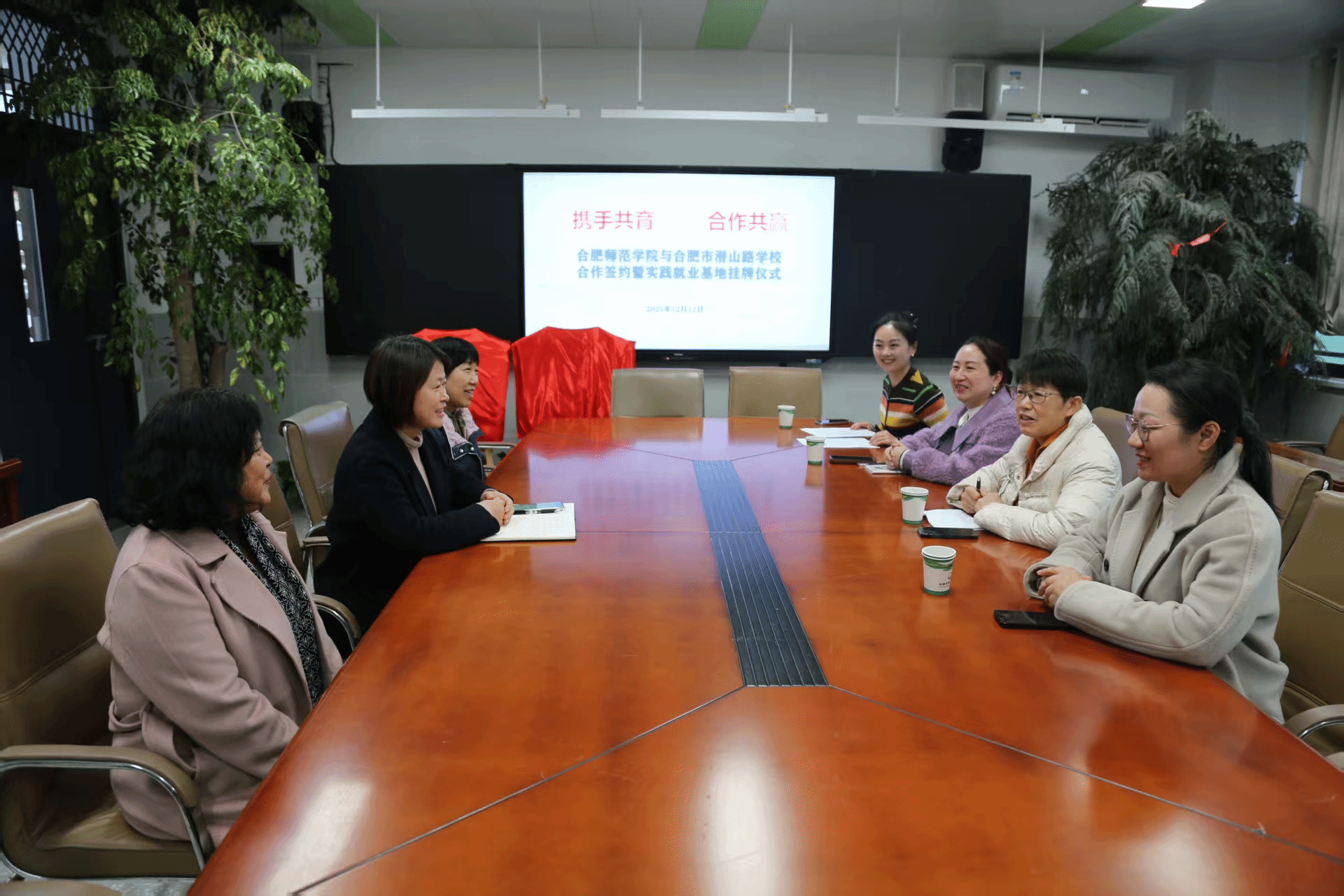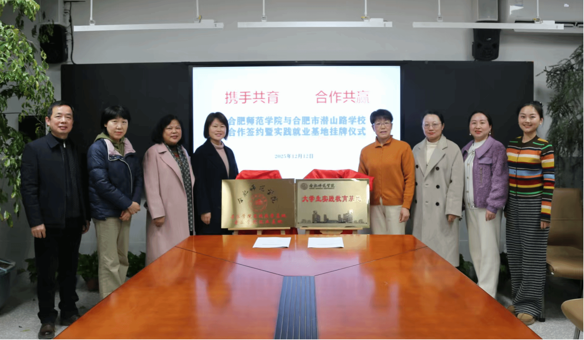12月12日,音乐学院领导班子、挂职教师何冰与合肥市潜山路学校全体党政领导齐聚一堂,共同见证两校实习基地挂牌仪式圆满举行。此次挂牌标志着双方在艺术教育协同育人领域达成深度共识,将为师范生实践成长与小学艺术教育提质搭建坚实桥梁。