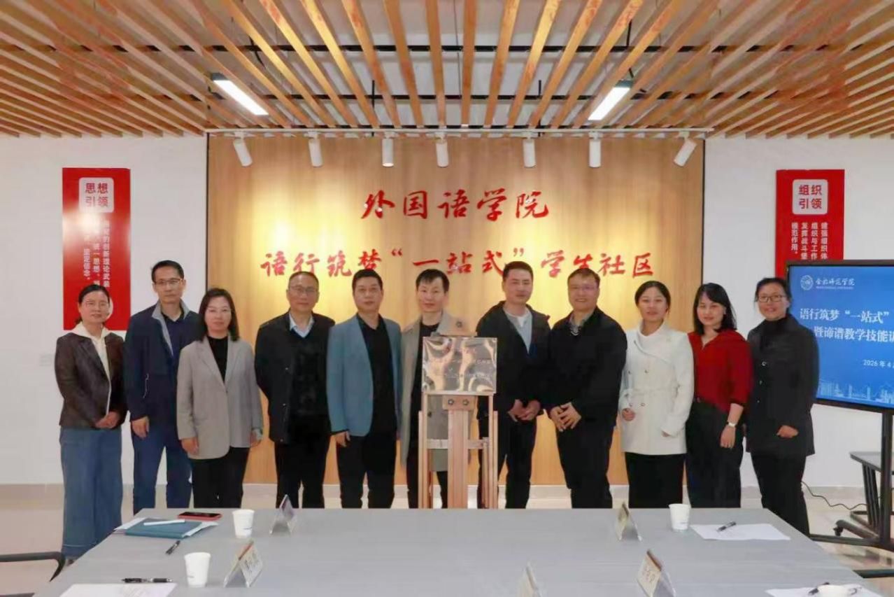 4月8日下午,外国语学院在滨湖校区9栋学生宿舍108室举行语行筑梦“一站式”学生社区启动仪式暨谛谱教学技能训练营开营仪式。安徽鼎校教育科技有限公司总监李治、安徽谛谱教育咨询有限公司总经理张卿,校学生工作部副部长尚金梅、教务处副处长范程华,外国语学院院长李可胜、党委副书记杨娜、副院长吴礼敬出席活动。相关企业人员、辅导员、训练营负责老师及全体营员参加。仪式由杨娜主持。