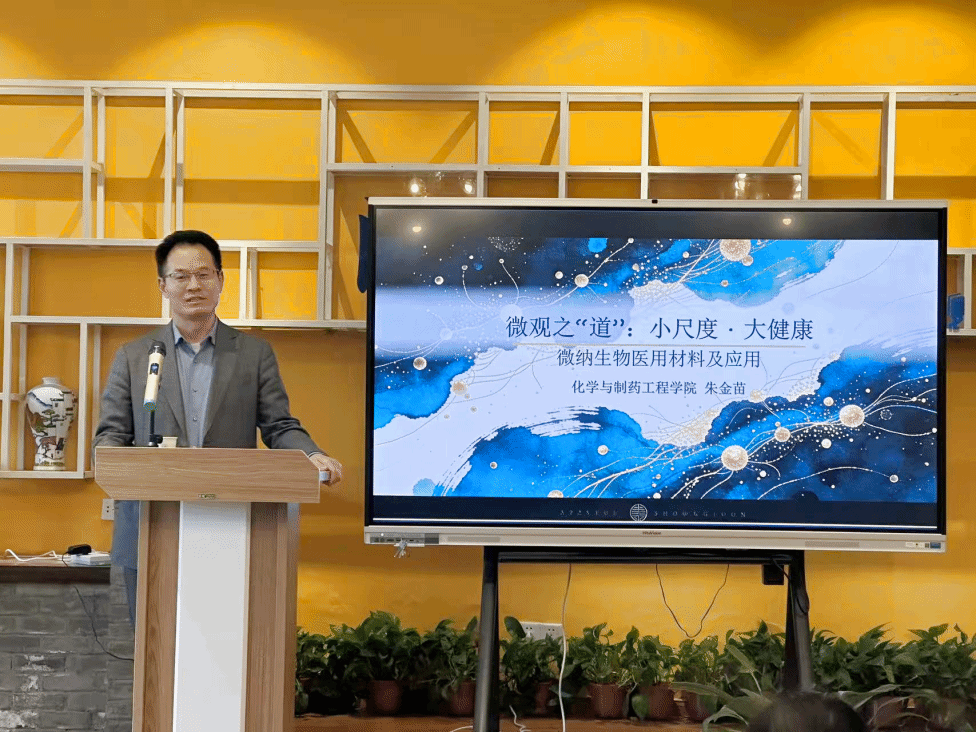 4月8日,锦绣校区“阅+历”读书讲堂科创系列第三期如期举办,本次讲座以“小尺度·大健康 —— 微纳生物医用材料及应用”为主题,由化学与制药工程学院院长朱金苗教授主讲,校阅读推广人、经济与管理学院万诗婕老师主持。