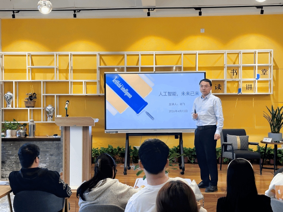 4月15日,锦绣校区“阅+历”读书讲堂举办以“人工智能,未来已来”为主题的专题讲座,讲座由计算机与人工智能学院院长谢飞教授主讲,校阅读推广人、电子信息与集成电路学院教师江淼主持。