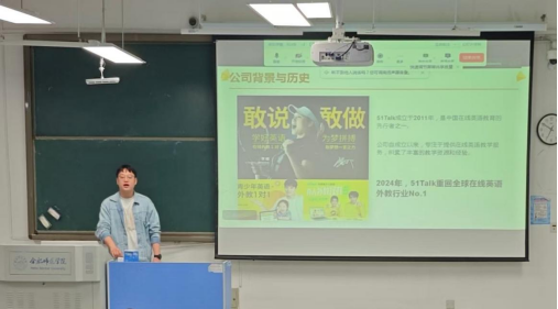 为落实“访企拓岗促就业”专项行动,助力毕业生高质量就业,4月16日晚,外国语学院在逸夫楼A107教室举办51Talk专场宣讲招聘会。活动采用线上线下结合形式,实现宣讲与面试无缝衔接,为学子提供高效求职体验,吸引相关专业毕业生及有意兼职的学生参与。