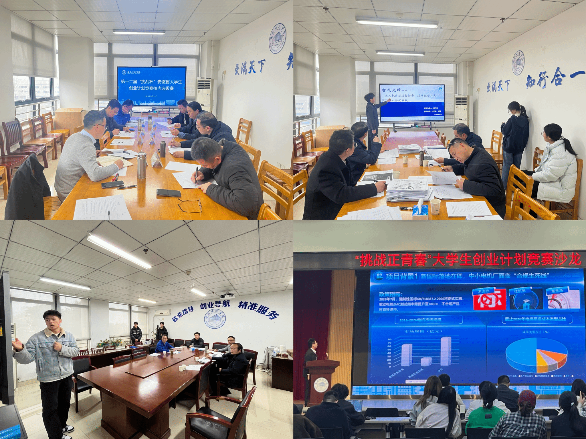 为全面贯彻党的二十大和二十届历次全会精神,服务科技创新和产业创新深度融合,促进青年高质量充分就业,助力学校高质量发展。近日,校团委牵头举办第十二届“挑战杯”安徽省大学生创业计划竞赛校内选拔赛和多场“挑战杯”大学生创业计划竞赛沙龙,宣传部、发展规划处、就业创业工作处、教务处、科研处、实验室建设与管理中心、附属西安路学校、校团委等单位负责人和有关人员担任评委。