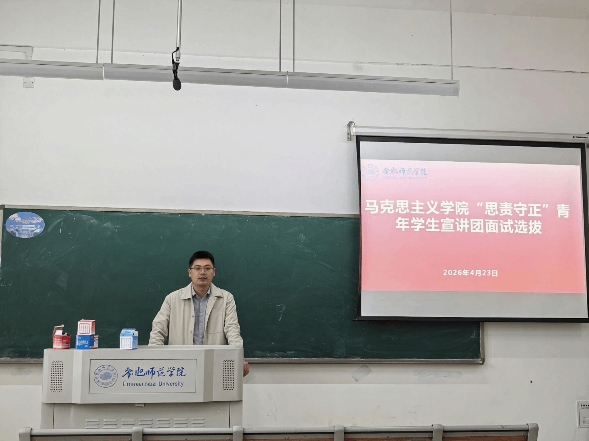 为深入学习宣传党的创新理论,筑牢青年理想信念根基,4月23日,马克思主义学院在滨湖校区举办“思责守正”青年学生宣讲团首批宣讲员招募选拔评审会。院长何光辉,专业教师王露、王宗双,辅导员齐新、田祖晨担任评委。
