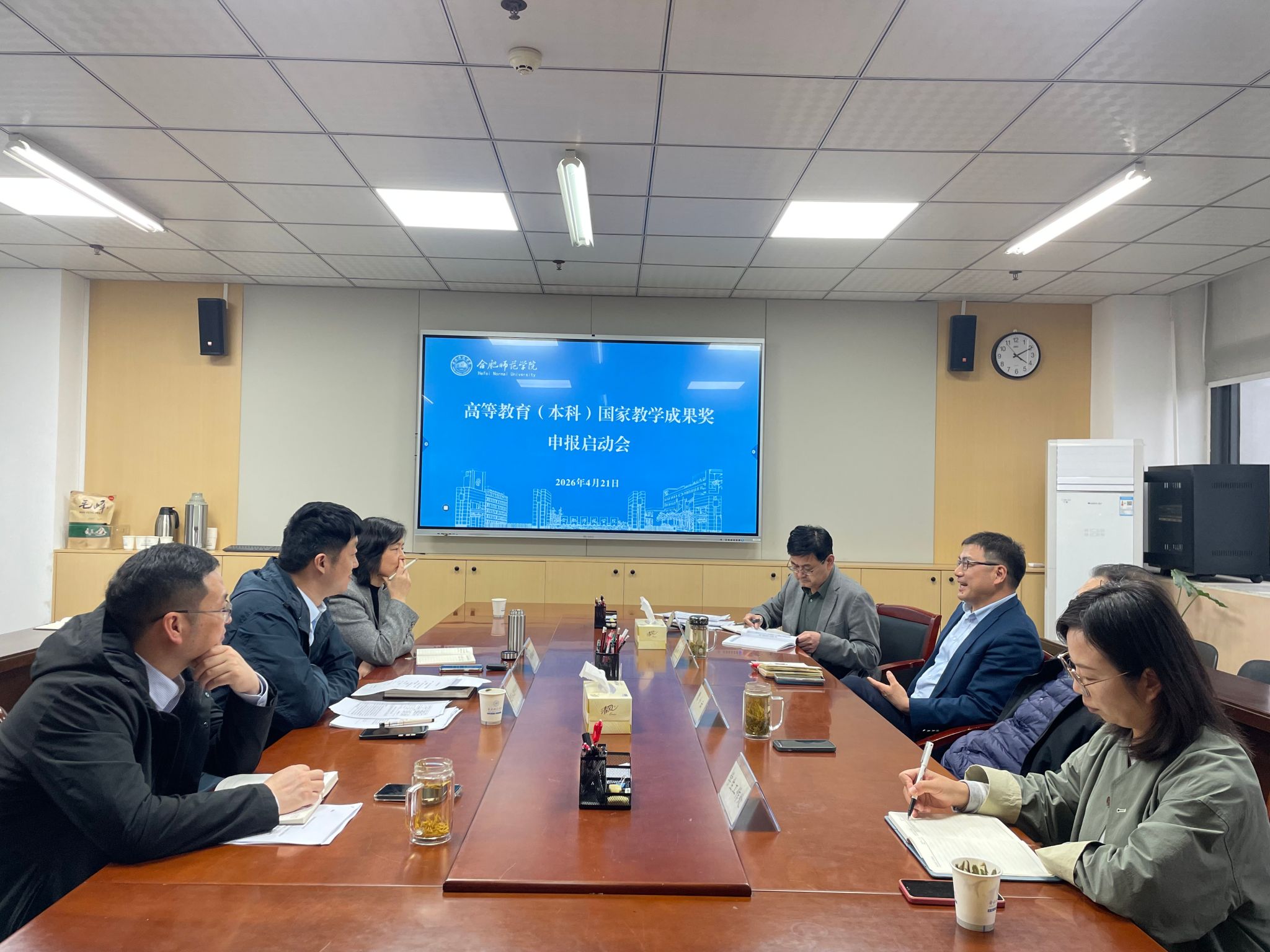 为统筹推进国家教学成果奖申报工作,凝练教学成果,凝聚工作合力,4月21日下午,学校在行知楼408会议室召开高等教育(本科)国家教学成果奖申报启动会。院党委委员、副院长周端明出席会议,学生工作处、本科教学督导团、相关二级学院、教务处负责人参加会议。会议由教务处处长钱立青主持。