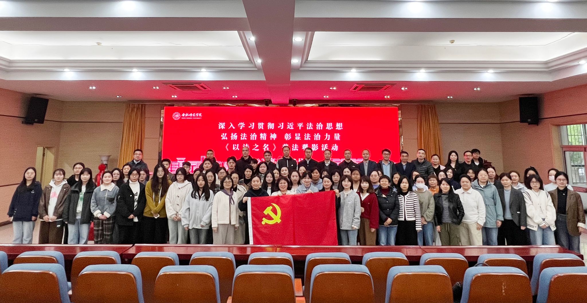 为深入学习贯彻习近平法治思想,大力弘扬社会主义法治精神,落实总体国家安全观,扎实推进法治校园、清廉学院建设,4月22日,经济与管理学院组织全体师生党员在学术报告厅集中观看法治题材电影《以法之名》。