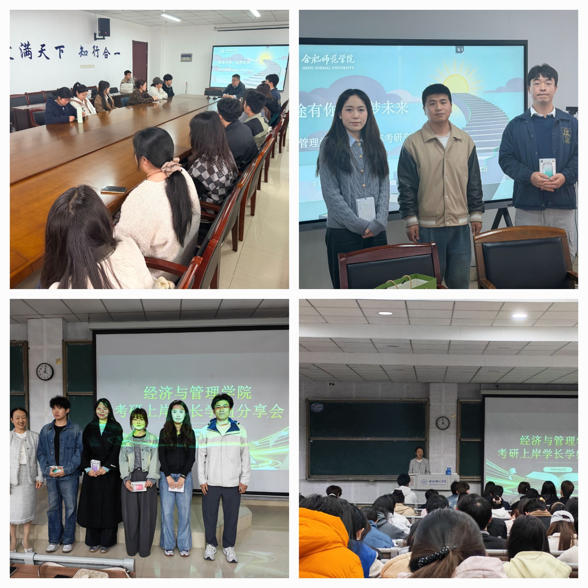 为发挥朋辈示范引领作用,助力学子明确考研方向、掌握备考技巧,切实解决同学们在考研备考中的困惑,4月22日下午,经济与管理学院在滨湖校区与锦绣校区同步举办考研经验分享会,两校区全体有考研意向的学子齐聚一堂,共赴这场研途赋能之约。学院党委书记陈好、副书记陶敏以及辅导员徐文、高劲成参加会议。