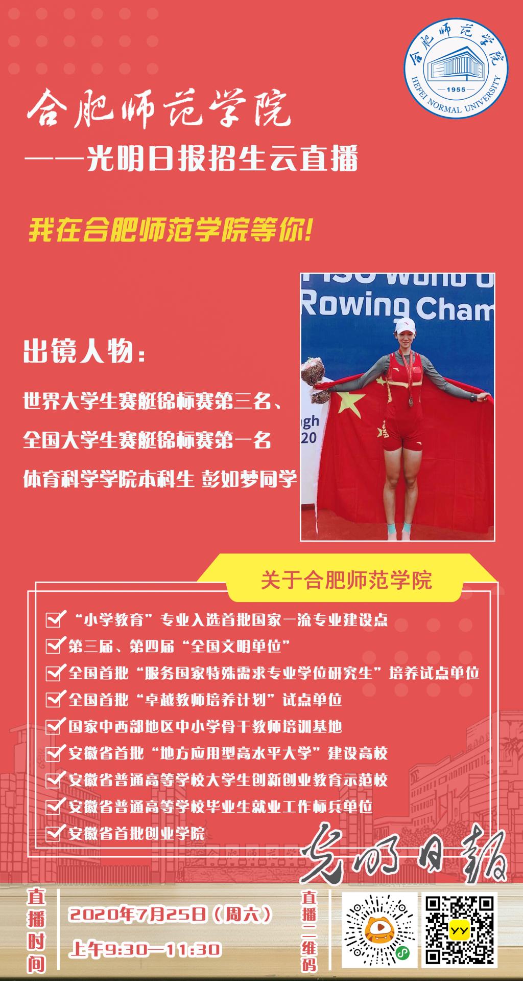 beat365唯一官方网站与光明网、光明日报联合举办的“beat365唯一官方网站——光明日报2020招生云直播”将于7月25日(周六)上午9:30—11:30进行,现发布直播活动第六次预告,欢迎全国网友和广大考生、家长们届时收看。
