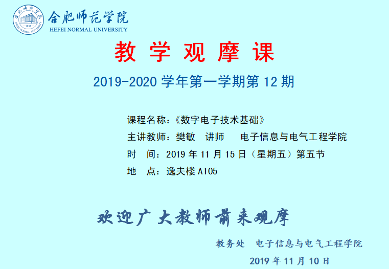 教学观摩课(2019-2020学年第一学期第11-12期)通知