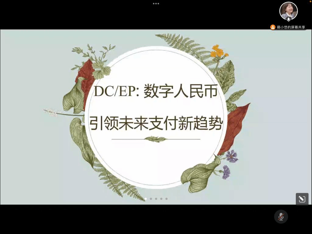 本网讯 11月29日上午,经济与管理学院教师邓苠苠在腾讯会议以线上形式举行了主题为“DC/EP:数字人民币引领未来支付新趋势”的学术报告,2020级国际经济与贸易专业全体学生聆听报告。