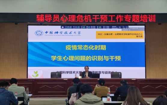 本网讯 为提升辅导员队伍心理危机的识别与干预能力,提高心理育人工作的针对性和实效性,近日,学生工作处邀请中国科学技术大学心理健康教育中心主任沈克祥开展题为“疫情常态化时期学生心理问题的识别与干预”的专题培训,各二级学院党委副书记、专职辅导员,学生工作处全体工作人员参加培训。