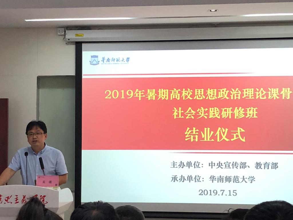 本网讯 今年暑期,马克思主义学院周继祥老师受马院指派参加了由中宣部、教育部组织的2019年暑期高校思想政治理论课骨干教师社会实践研修活动,该活动由华南师范大学全国高校思想政治理论课教师研修广东基地承办。