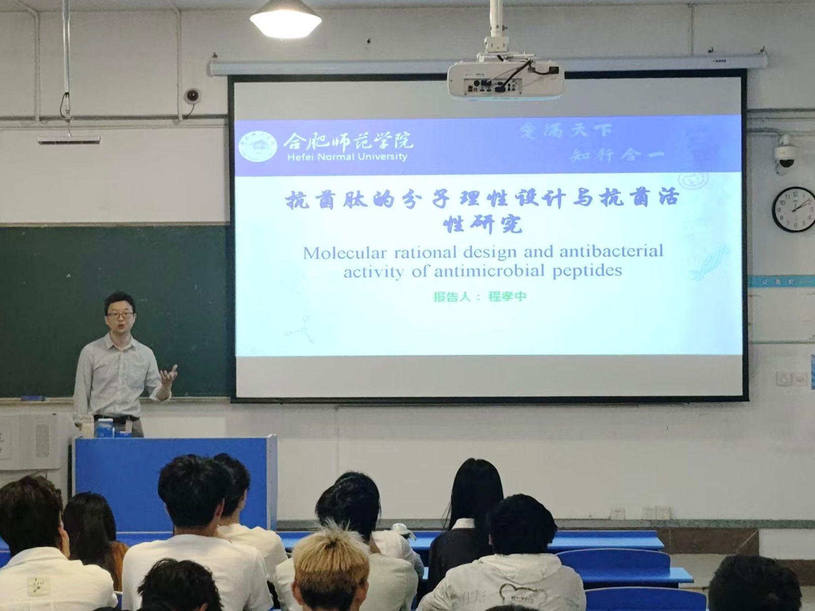 2025年5月16日下午,生物与食品工程学院程孝中博士在锦绣校区逸夫楼A109举行了一场题为“抗菌肽的分子理性设计与抗菌活性研究”的学术讲座,食品质量与安全及生物制药等专业的学生听取了讲座。