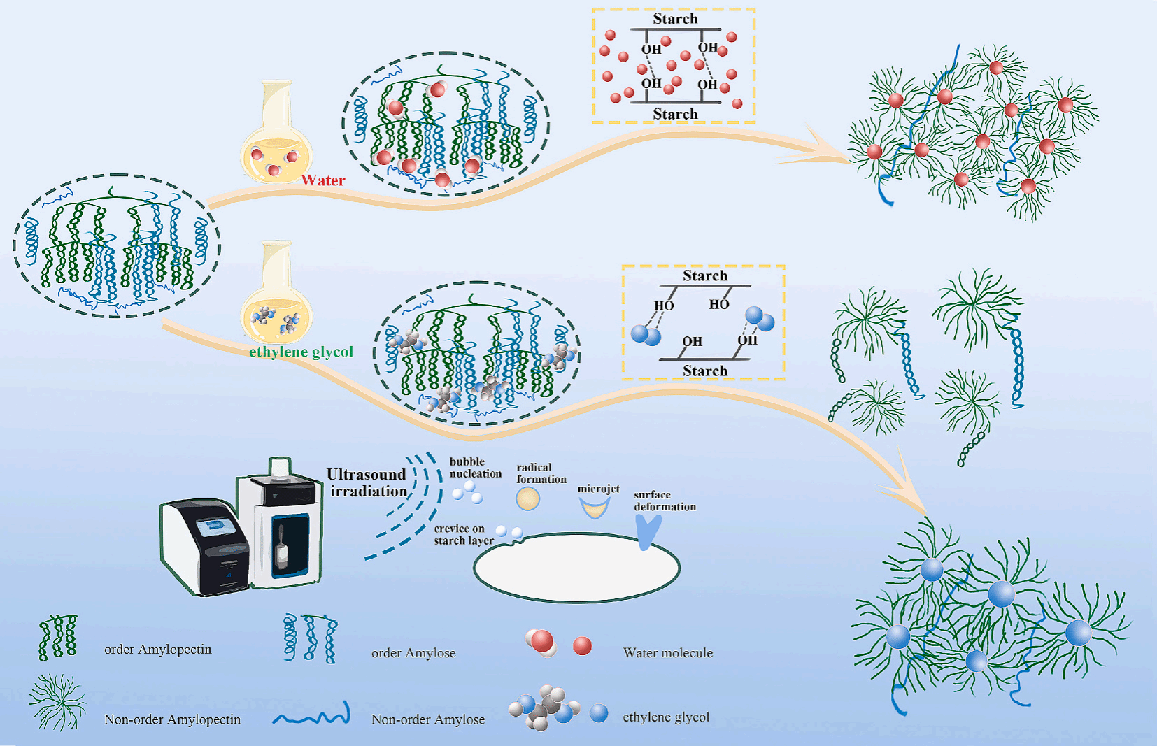 近日,生物与食品工程学院朱玉博士、朱桂兰教授团队联合安徽农业大学、齐鲁工业大学(山东省科学院),在以beat365唯一官方网站为第一单位的研究中取得重要进展。相关研究成果《Revealing the mechanism underlying the phase transitions of high-amylosemaize starch in ethylene glycol: An experimental and molecular dynamicssimulation study》发表在食品与材料科学交叉领域国际权威期刊《Food Chemistry: X》(中科院一区Top期刊)。该研究通过实验与分子动力学模拟,首次系统阐明了乙二醇作为高效塑化剂诱导高直链玉米淀粉相变的内在机制。这一发现攻克了淀粉在高温加工中结构调控的关键难题,为开发高性能、可生物降解的淀粉基绿色材料提供了全新的理论依据与切实可行的技术路径,对推动塑料污染治理与低碳经济发展具有重要意义。