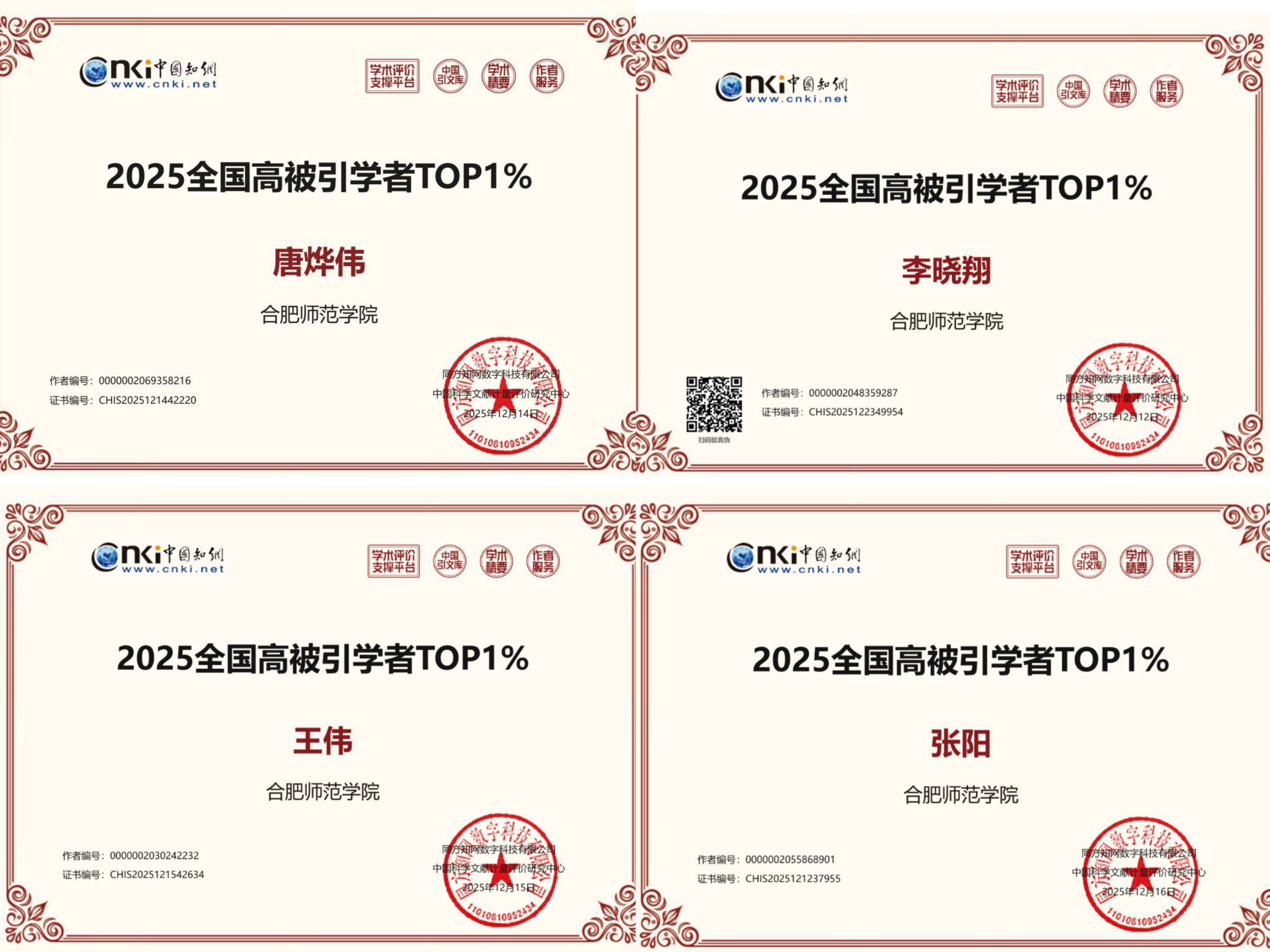 我校多名教师入选2025中国知网高被引学者