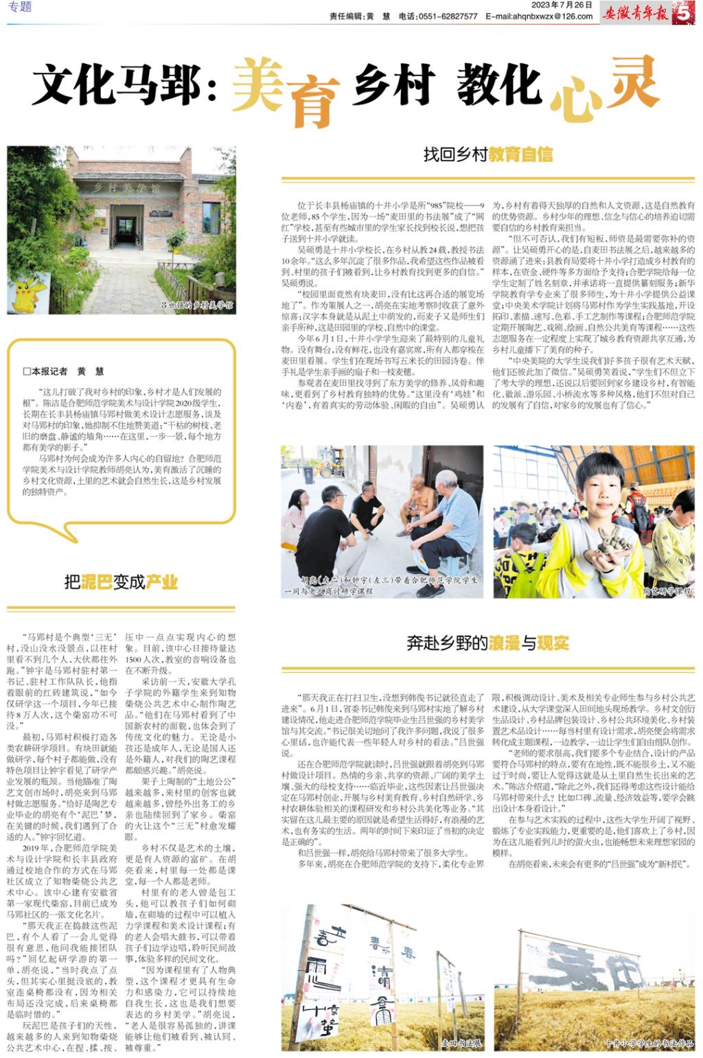 《安徽青年报》报道我院师生的乡村美育实践:文化马郢-美育乡村教化心灵