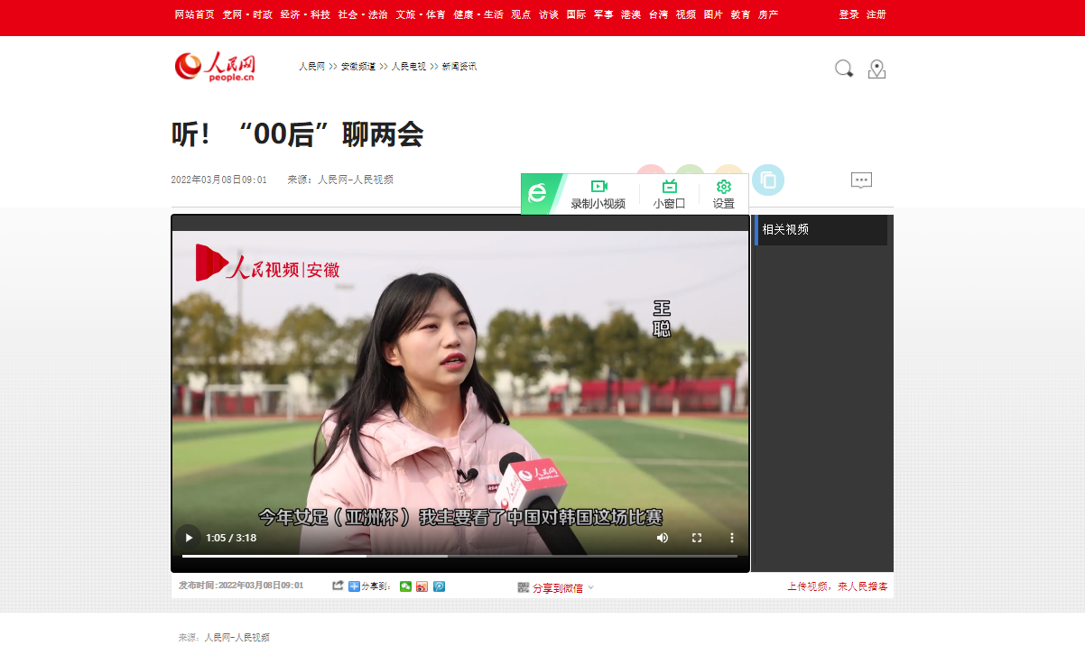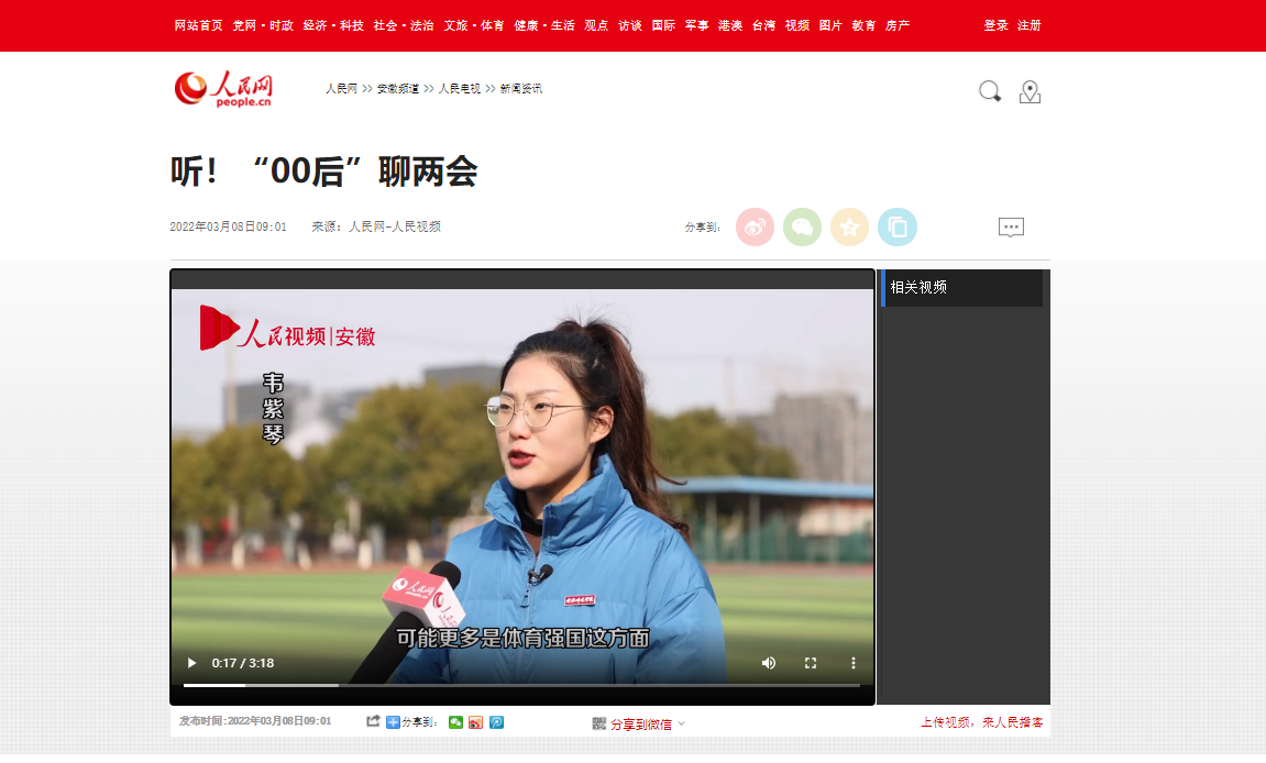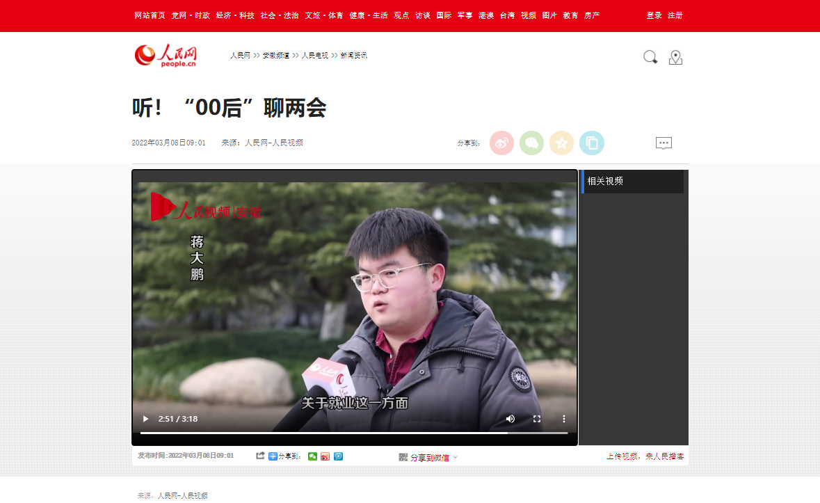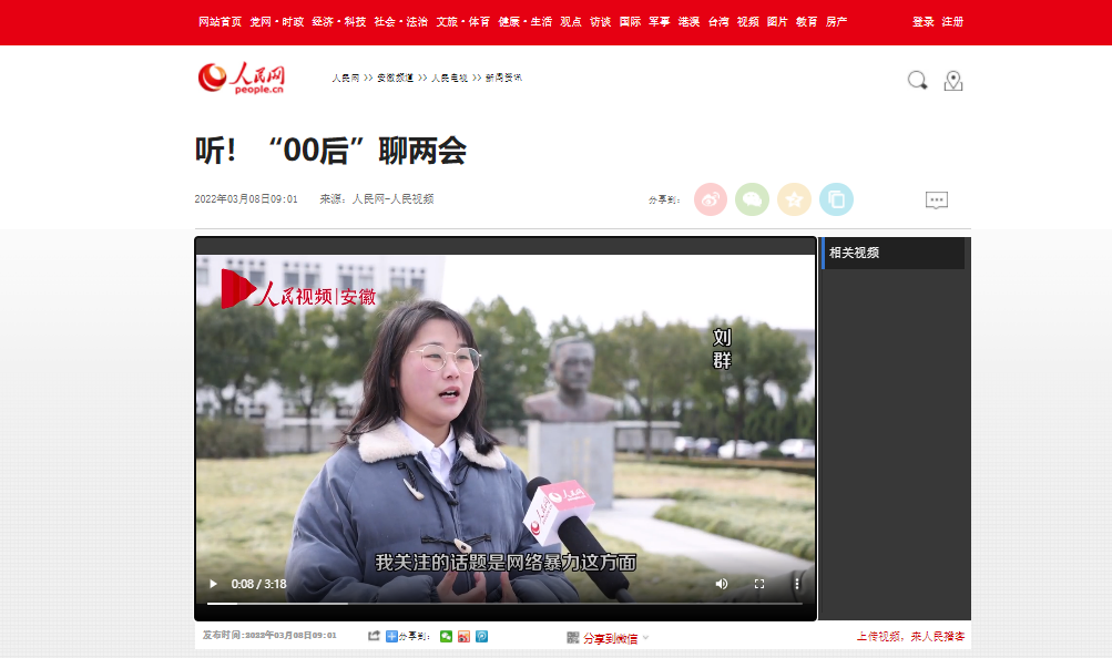 3月8日,人民网以《听!“00后”聊两会》为题,对此进行了报道。(宣传部)