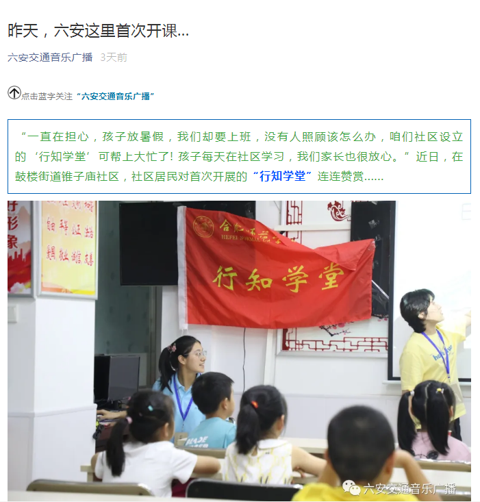 安青网、六安交通音乐广播报道教师教育学院“六安鼓楼行知学堂”