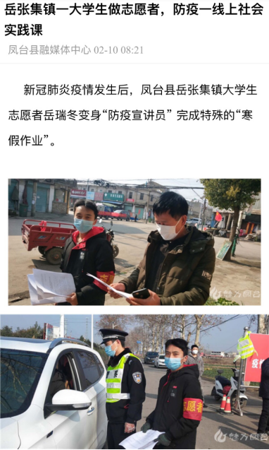 凤台县融媒体中心报道物材学生防疫志愿工作