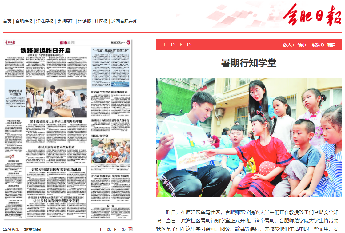 合肥日报报道我院在庐阳区龚湾社区开设“行知学堂”