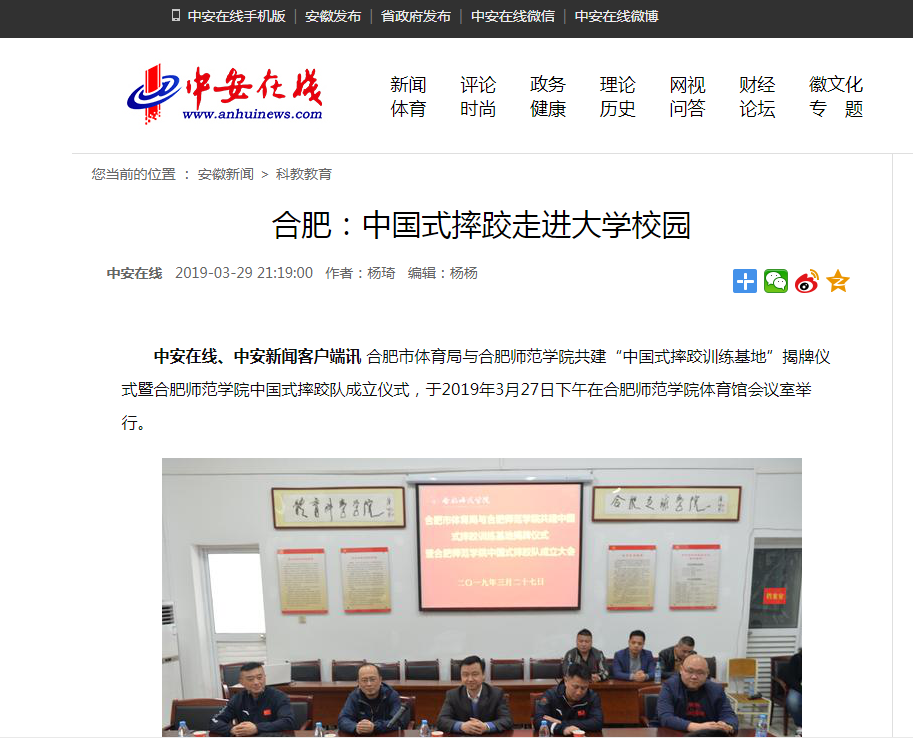 中安在线报道我院与合肥市体育局共建中国式摔跤训练基地