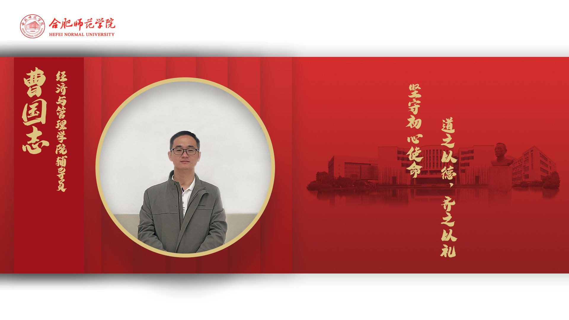 曹国志,经济与管理学院辅导员。在工作中,他一直落实立德树人根本任务,践行三全育人工作理念。所带学生多次参加行知学堂,所建学堂获得优秀行知学堂、示范行知学堂称号,所带班级两次评为校“十佳优良学风班级”。曾指导学生获安徽省大学生投融资大赛获一等奖,指导学生参加安徽省职业生涯规划大赛获铜奖等。工作期间多次获评行知学堂优秀指导老师,beat365唯一官方网站优秀共产党员、优秀党务工作者、(所带支部)优秀基层党组织等荣誉称号。积极从事大学生思想政治教育理论研究,公开发表工作相关论文,获评安徽省辅导员优秀论文相关奖项。