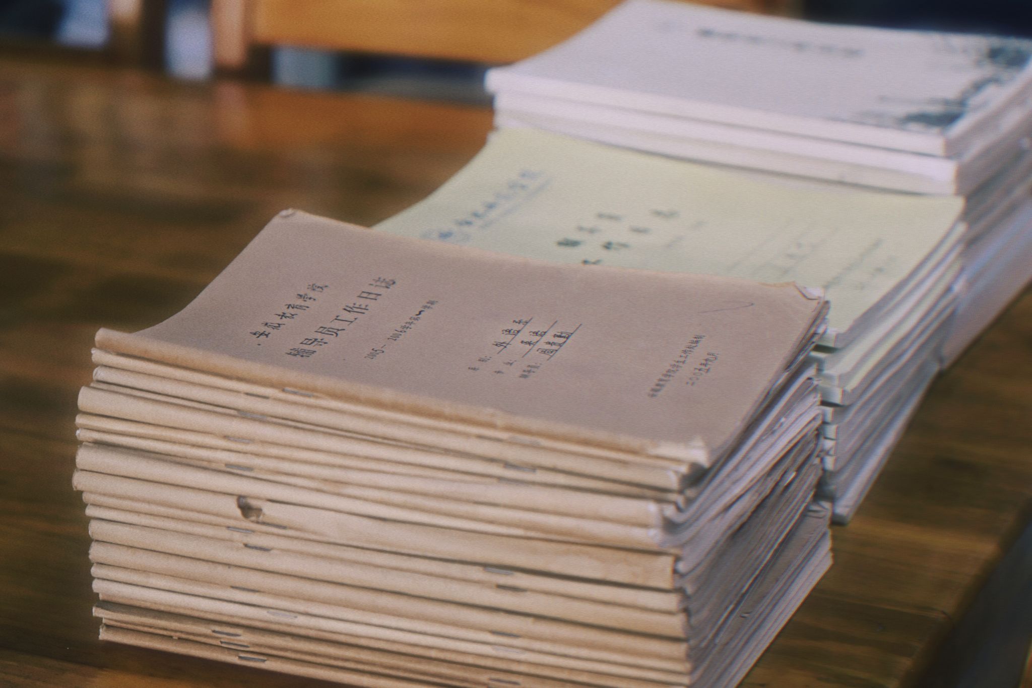 行知楼1015办公室的书柜里,整齐陈列着周贵勤的一部分工作日志,最前面的一摞极具年代感,封面清楚地印着:安徽教育学院辅导员工作日志。翻开扉页,泛黄的纸面上写着一行小字——“一切为了学生,为了一切学生,为了学生一切”。